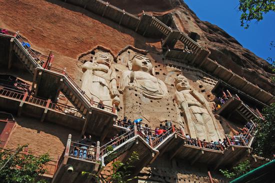 麦积山石窟世界文化遗产,国家AAAAA旅游景区,精美的泥塑艺术闻名世界,被誉为东方雕塑艺术陈列馆。始建于384-417年,存有221座洞窟、10632身泥塑石雕、1300余平方米壁画。